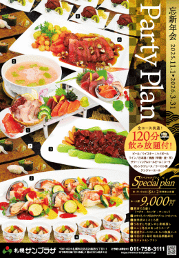 各コース2時間の飲み放題付+和洋中MIX卓盛料理と、